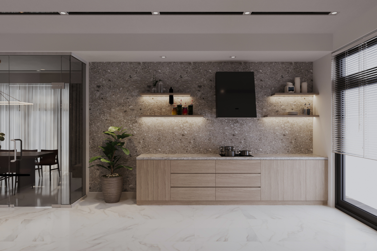 El primer punto clave es la delimitación visual. Aunque no haya paredes, debe quedar claro dónde empieza y termina la cocina. Esto se puede lograr con cambios de pavimento, islas, penínsulas, iluminación diferenciada o incluso techos con distintos tratamientos.